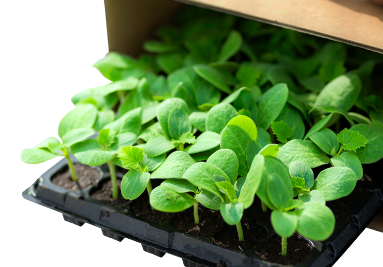 苗が根鉢を形成して培土をしっかり抱え込んでいるため、プラグトレーから苗が抜けやすく移植作業が簡単です。移植時の植え痛みも少なく、初期生育が順調です。出荷前に丁寧に挿し替え作業を行い、生育、品質が均一に揃った苗をお届けいたします。