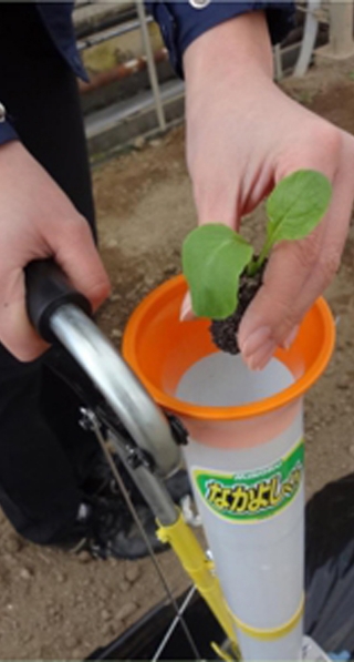 みのる産業ハンドプランターでの定植が可能ですが、苗を置くだけになるため、培地が乾かないように土寄せなど定植後の管理をお願いします。