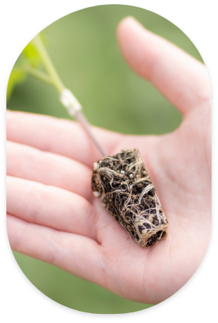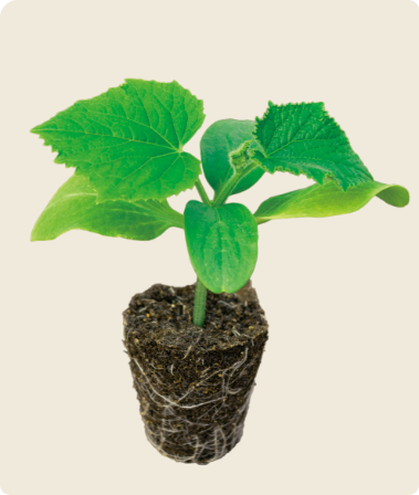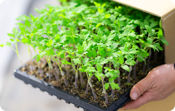 苗が根鉢を形成して培土をしっかり抱え込んでいるため、プラグトレーから苗が抜けやすく移植作業が簡単です。移植時の植え痛みも少なく、初期生育が順調です。出荷前に丁寧に挿し替え作業を行い、生育、品質が均一に揃った苗をお届けいたします。
